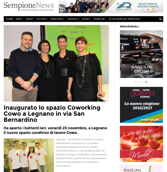 È quindi un piacere – e speriamo anche un piccolo servizio per gli utenti del nostro sito – poter raggruppare gli articoli che parlano di noi e di ciò che avviene nel nostro Cowo® di via San Bernardino 131 a Legnano.